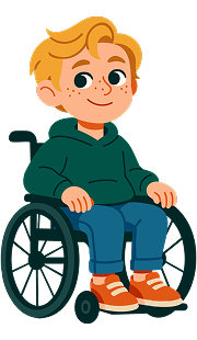 Luke is an inquisitive 8-year-old who loves history and sharing new discoveries with classmates. Living with muscular dystrophy, he uses a wheelchair and benefits from flexible, accessible classrooms that support his mobility and participation.